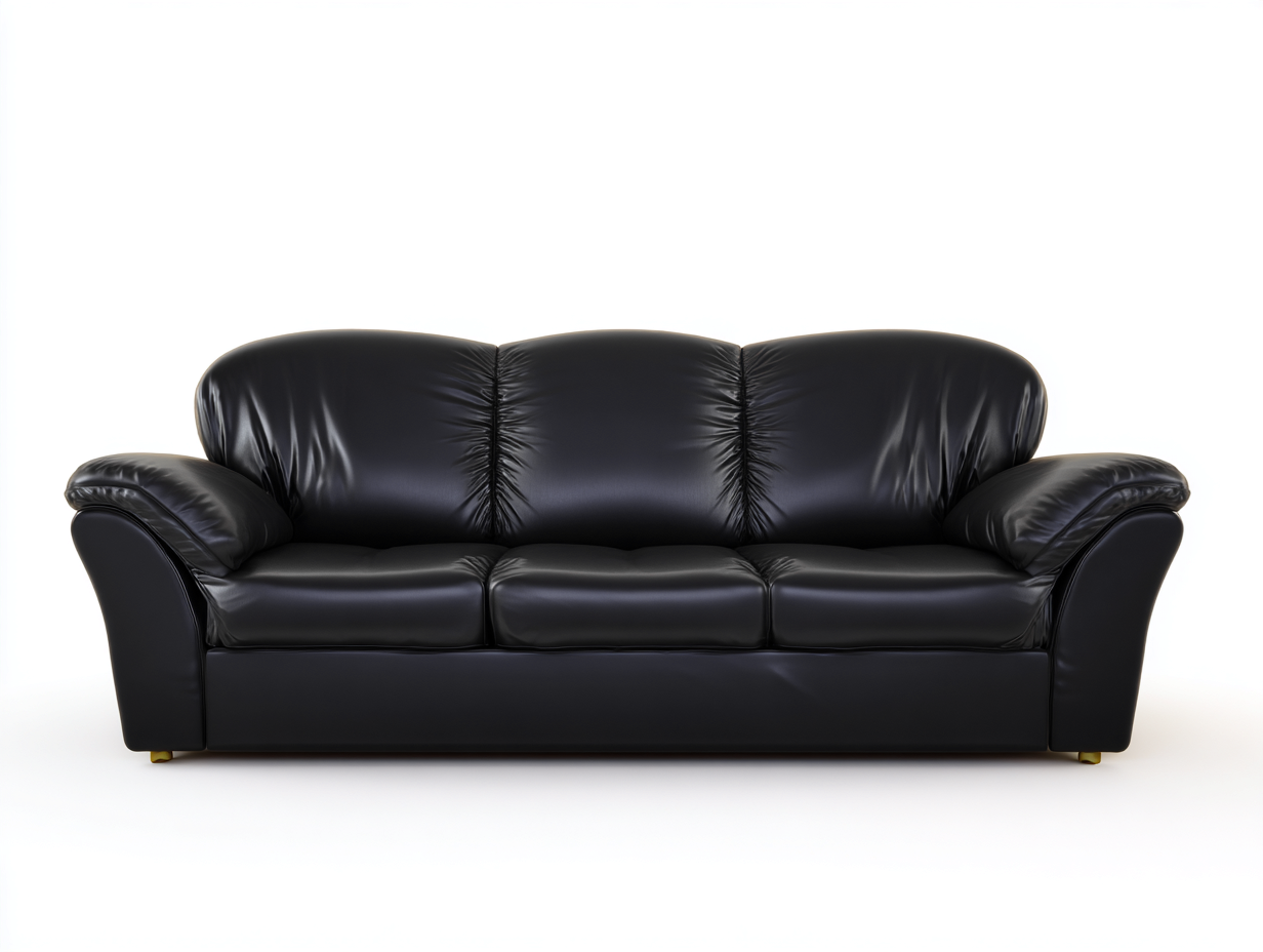 • Divani a 3 posti in pelle imbottita 220x90x85cm - Nero - Stile classico elegante
